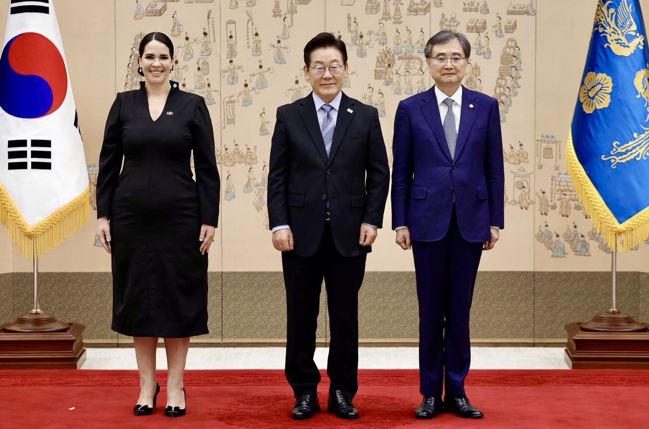 Tras la ceremonia oficial, la Embajadora Martínez fue recibida en audiencia privada por el Presidente Lee Jae-myung, acompañado por el Ministro de Relaciones Exteriores, S.E. Cho Hyun; el Asesor de Seguridad Nacional, Wi Sung-lac; el Secretario de Política Exterior de la Presidencia, Choi Hee-deok; la Portavoz Presidencial, Kang Yu-jung; y el Viceministro y Jefe de Protocolo del Ministerio de Relaciones Exteriores, Embajador Kim Tae-jin.