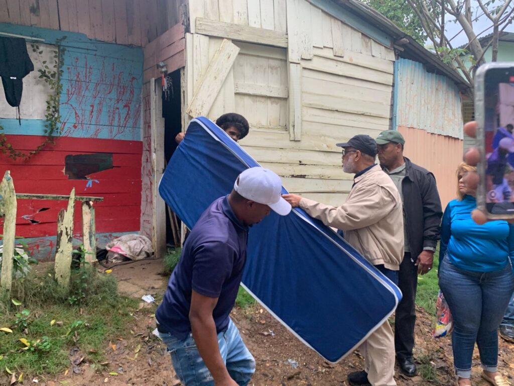 Como parte del programa asistencial del Gobierno, la Dirección General de Desarrollo de la Comunidad (DGDC), con el apoyo de la Dirección de Asistencia Social y Alimentación Comunitaria (DASAC), acudió a varios sectores pertenecientes a los municipios Santo Domingo Norte y Este, así como a Los Alcarrizos, zonas que fueron afectadas por la Tormenta Melissa.