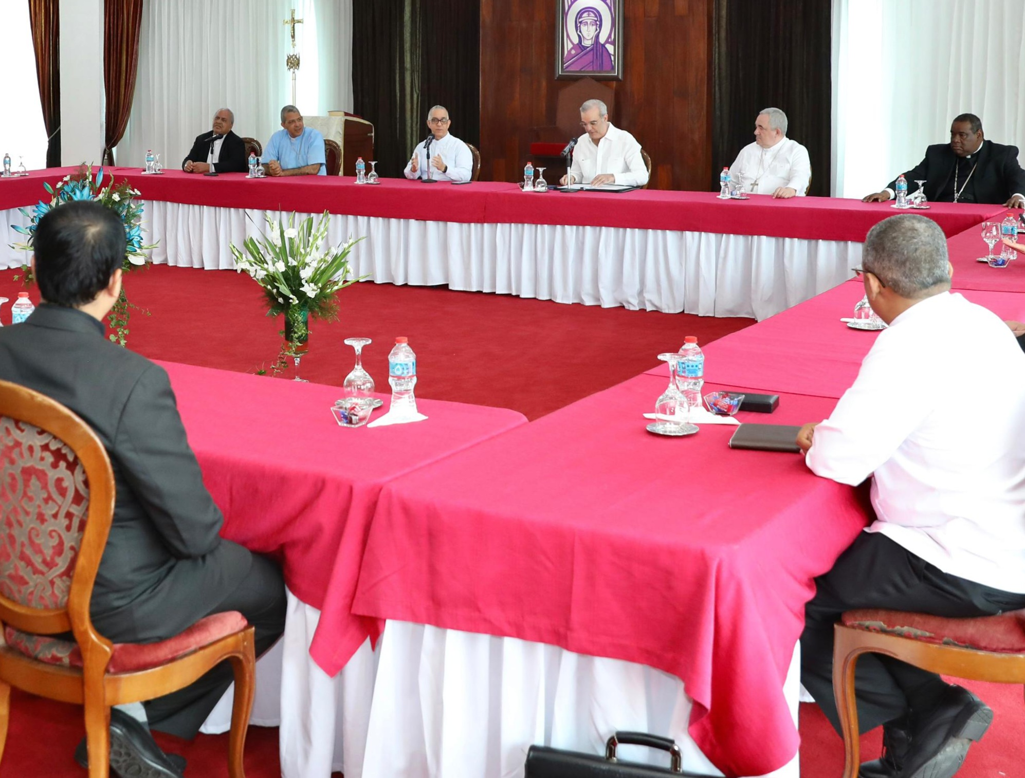 Santo Domingo Este.- El presidente Luis Abinader sostuvo un almuerzo este viernes con los miembros de la Conferencia del Episcopado Dominicano (CED), en un encuentro orientado a continuar impulsando acciones conjuntas en favor del bienestar social del país.