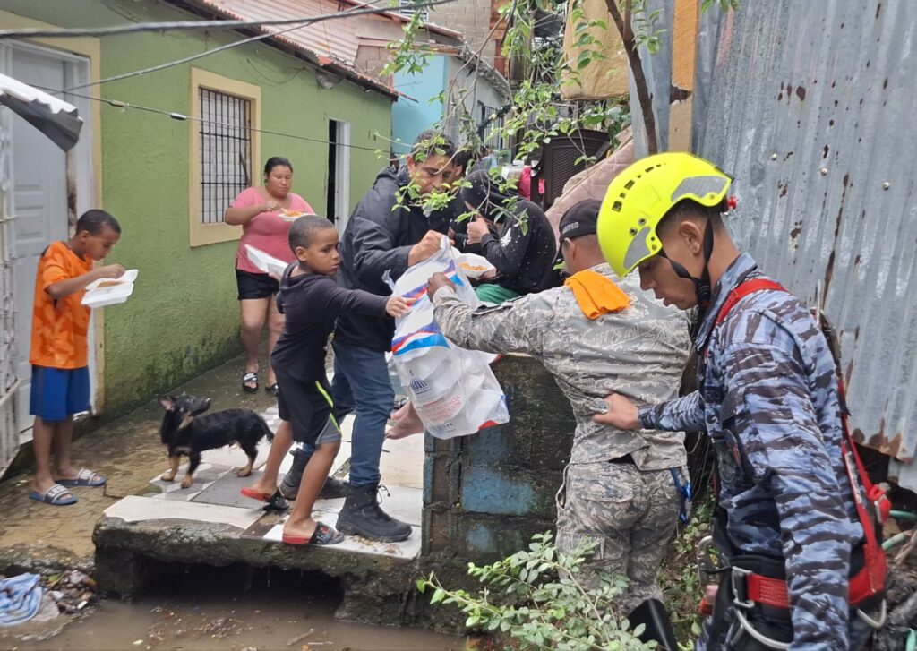 Además de la entrega de raciones de comida caliente en los sectores afectados, también reciben asistencia alimentaria todo el personal de socorro que trabaja en las labores de traslado y poner a salvo a las familias afectadas y cuyas casas han sido inundadas por los torrenciales aguaceros.