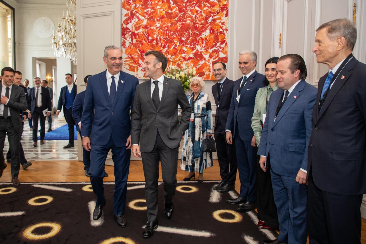 Tras ser recibido con los honores correspondientes, el presidente Luis Abinader se dirigió, junto an Emmanuel Macron, al interior del palacio, donde además volvieron a tratar el tema de la pacificación y democratización de Haití. Asimismo, tocaron el tema de la guerra de Irán y mostraron su preocupación por la situación en esa región.