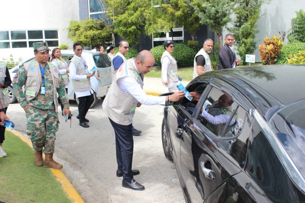 El director, Víctor Rosario, encabezó la entrega de brochur informativos a transeúntes, junto a un grupo de voluntarios que se sumaron a esta jornada de orientación ciudadana.