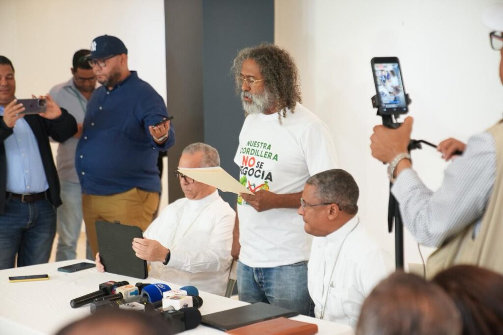 Durante un encuentro con comunitarios liderado por el sacerdote Ramón Ramos (padre Nino), en la Arquidiócesis de Santiago y con presencia de la prensa, Santos señaló que no existe una política pública ni una decisión gubernamental orientada a la explotación minera en esa zona.