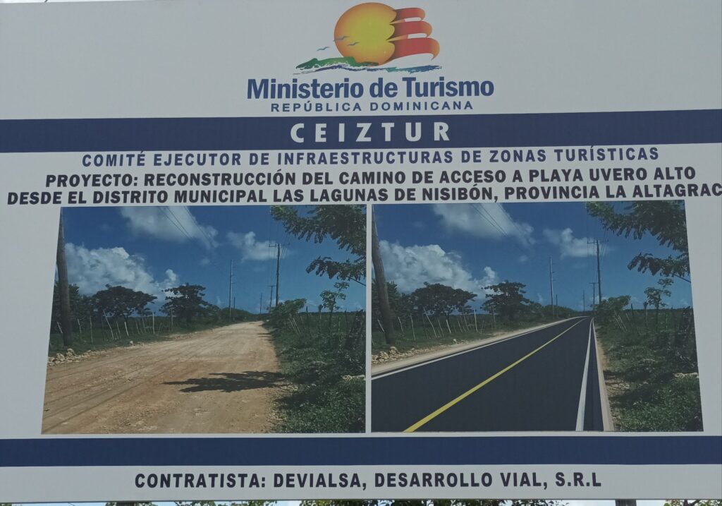 Nisibón, La Altagracia, martes 21.- El ministro de Turismo, David Collado, dejó iniciados los trabajos de reconstrucción de la carretera de acceso a playa Uvero Alto desde el distrito municipal Las Lagunas de Nisibón, en esta provincia, y se reunió con empresarios y otros actores del sector en la región Este, como parte de su estrategia para garantizar que más visitantes continúen llegando a ese destino.